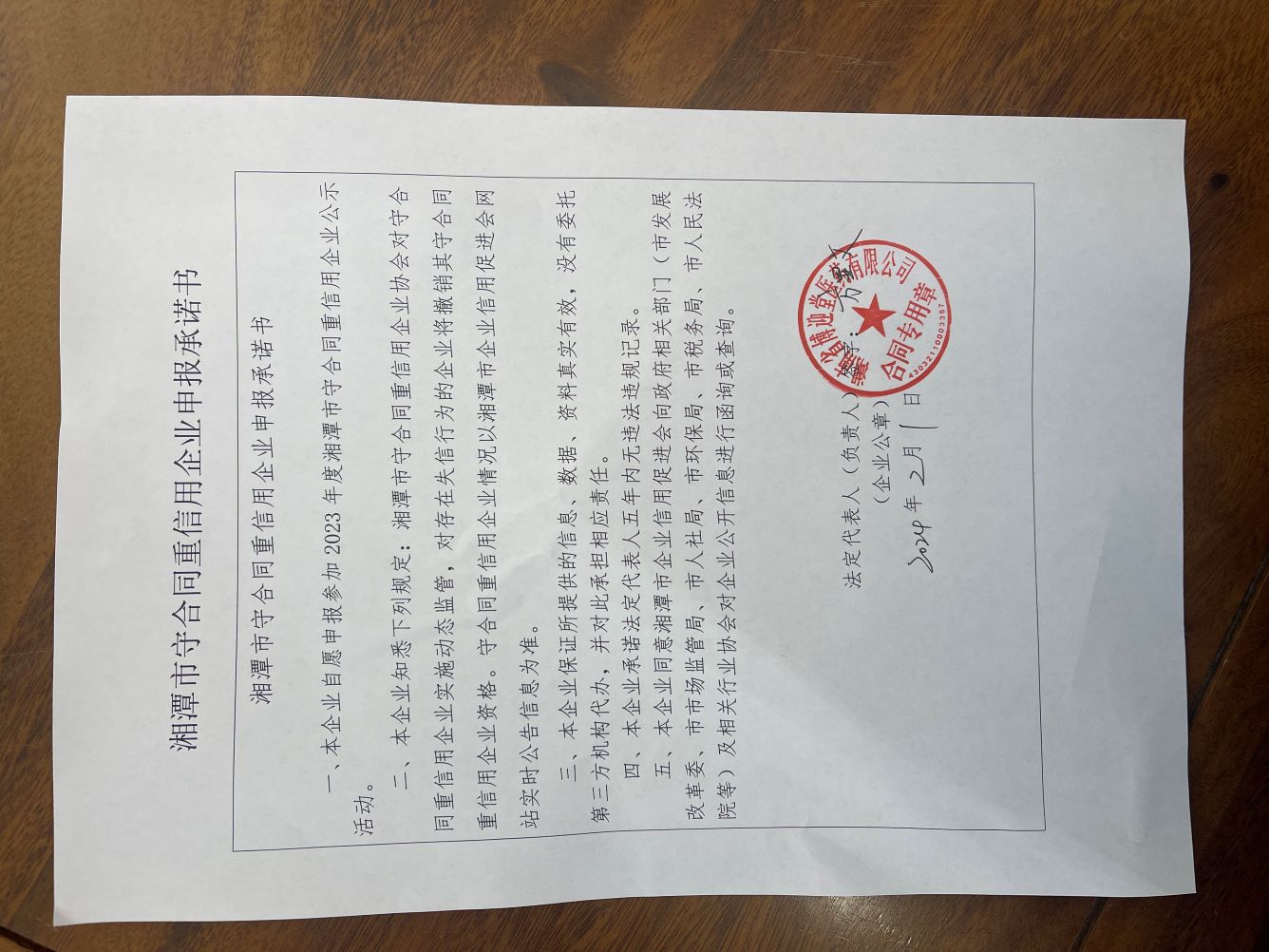 本企業(yè)根據(jù)《湘潭市守合同重信用企業(yè)申報規(guī)定》等編制 2023 年度企業(yè)信用報告書,并保證本報告書內容真實、準確、完整。