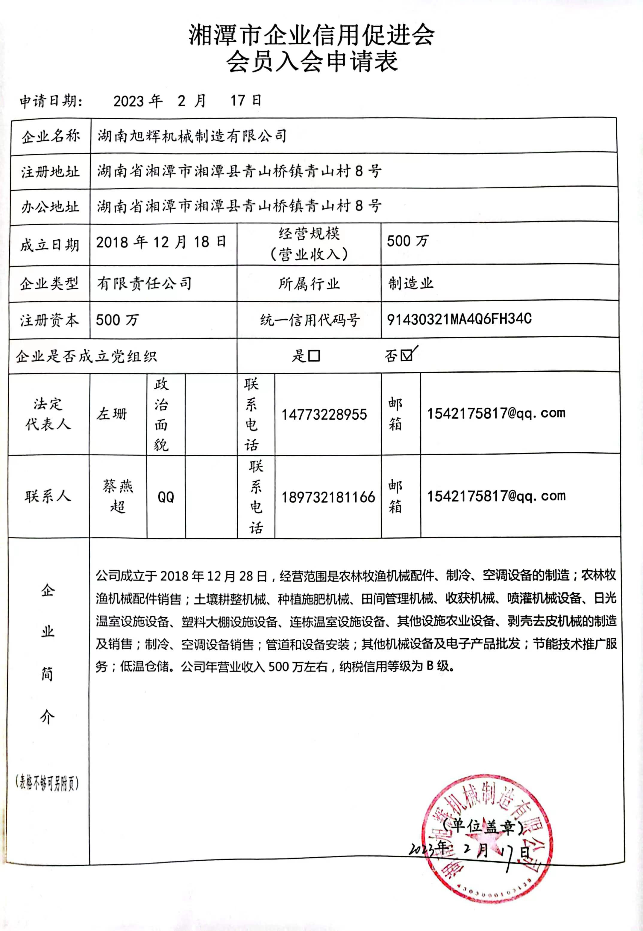 名稱: 湖南旭輝機械制造有限公司 登記證號: 91430321MA4Q6FH34C 法定代表人: 左珊