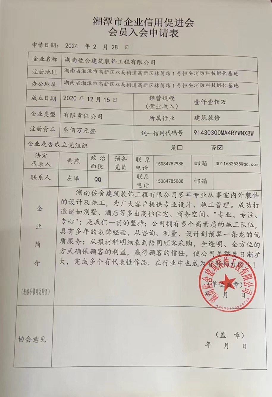 湖南佐舍建筑裝飾工程有限公司2023年度信用報告 2023 已發(fā)布