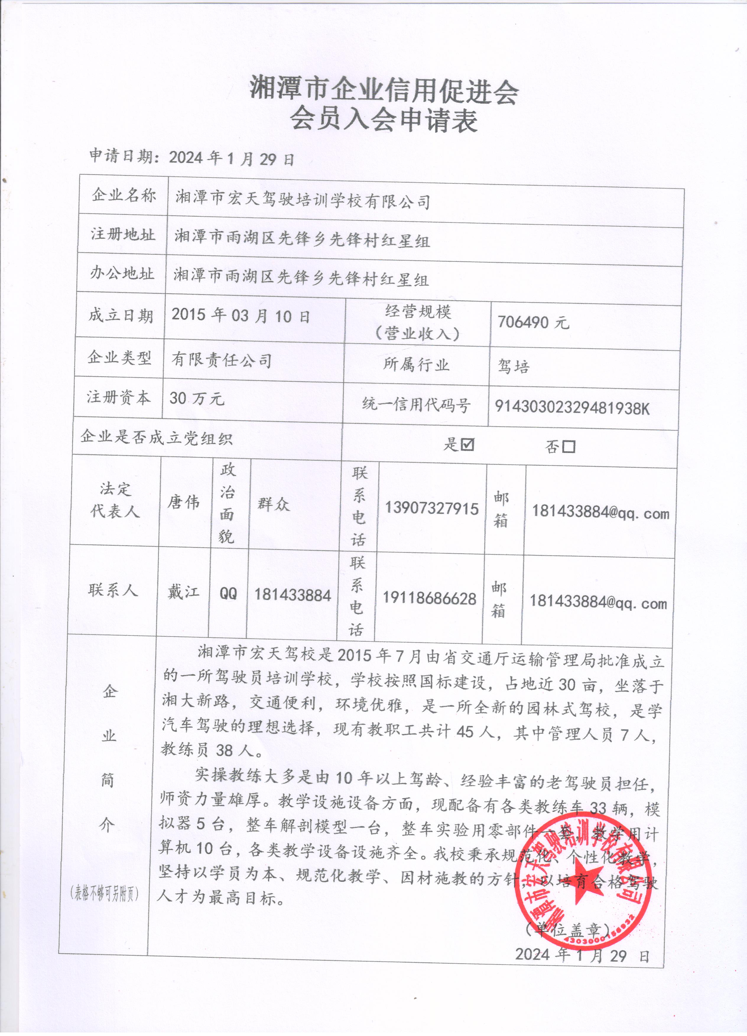 湘潭市宏天駕駛培訓(xùn)學(xué)校有限公司2023年度信用報告 2023 已發(fā)布