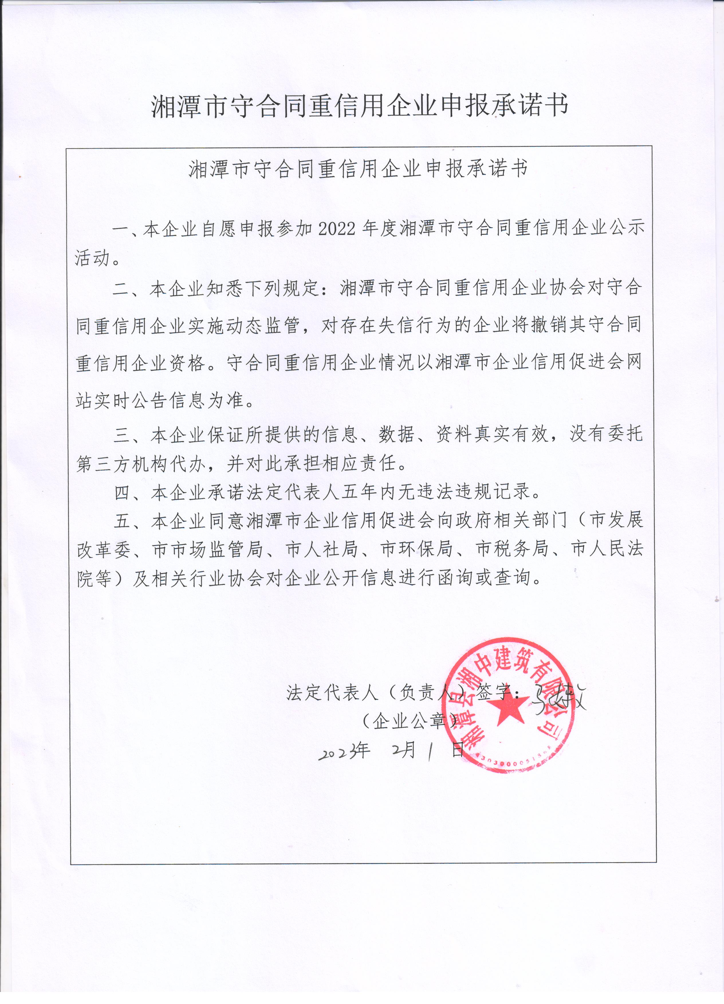 本企業(yè)根據(jù)《湘潭市守合同重信用企業(yè)申報規(guī)定》等編制 2022 年度企業(yè)信用報告書,并保證本報告書內(nèi)容真實、準確、完整。